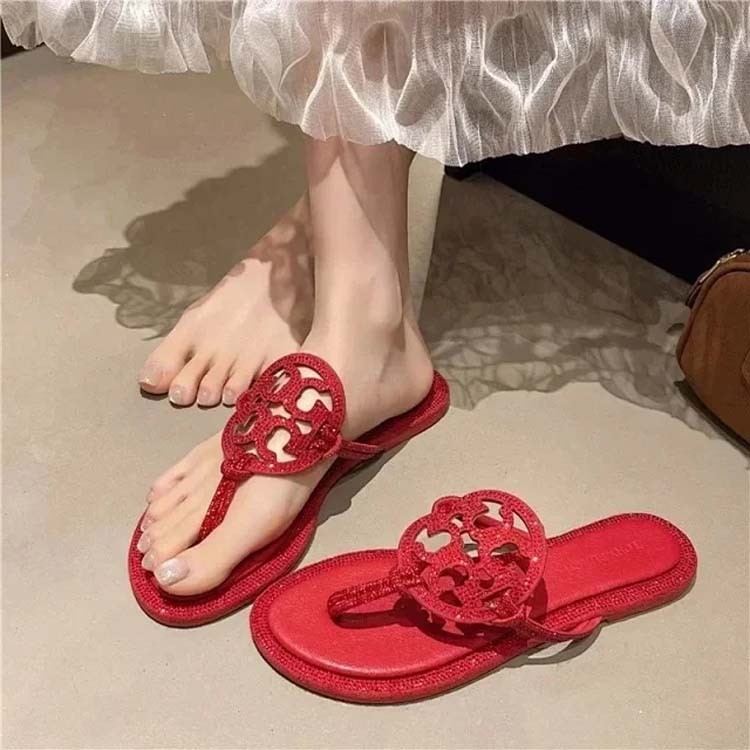 Tory Bury Neue Diamant Flachboden Frauen Pantoffeln ins modische Strand String Zehe Niet Strass Flip
