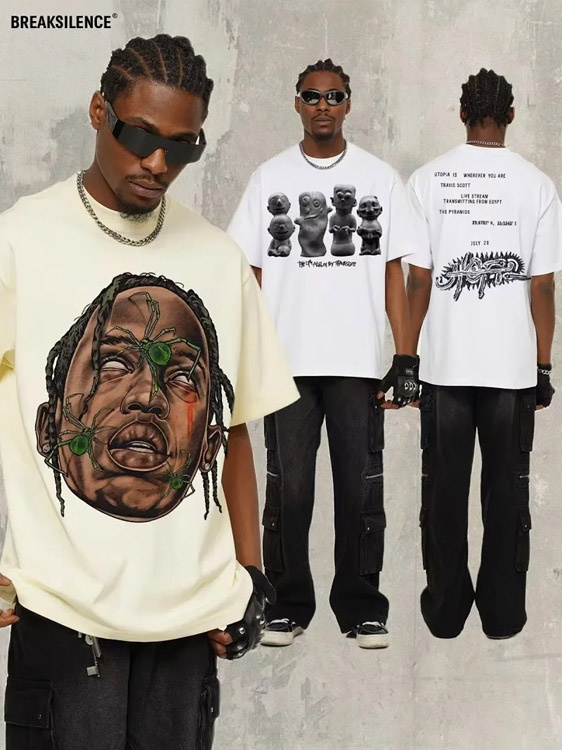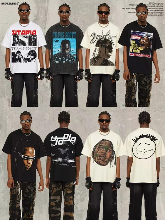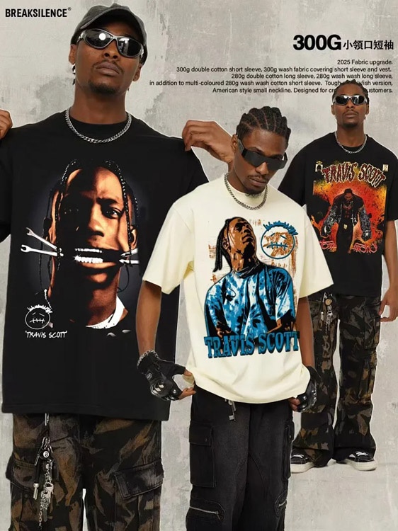 Startseite > Travis Scott Vintage Pure Cotton Double-Yarn Short-Sleeved T-shirt-5097