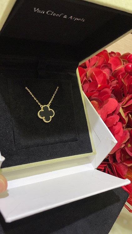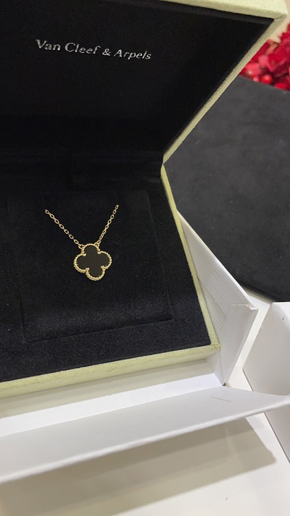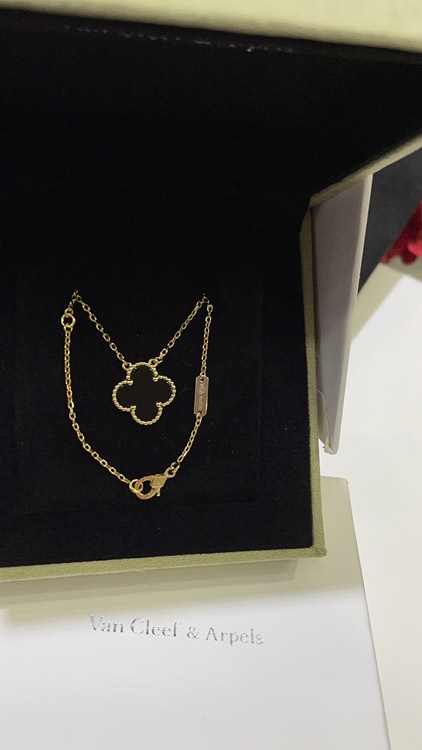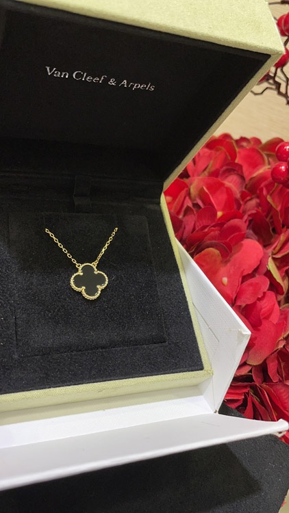 Van Cleef & Arpels Schwarz Onyx Vier-Blatt-Kleie Gold Halskette-3887