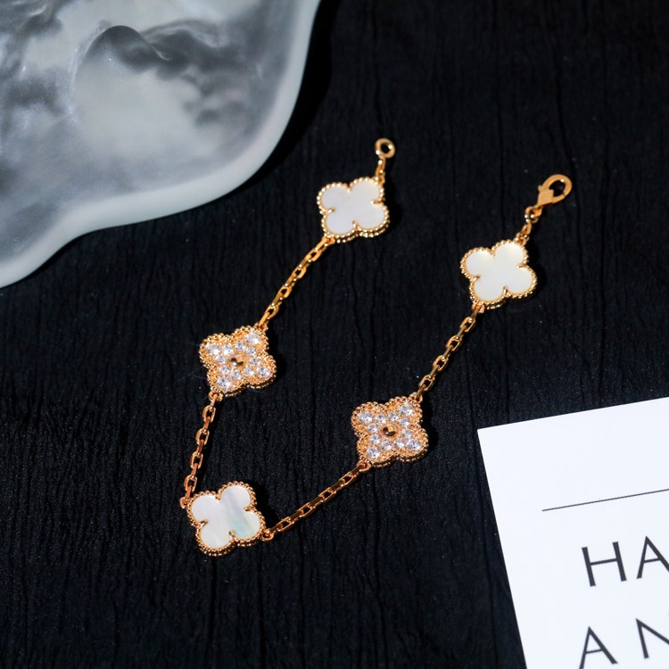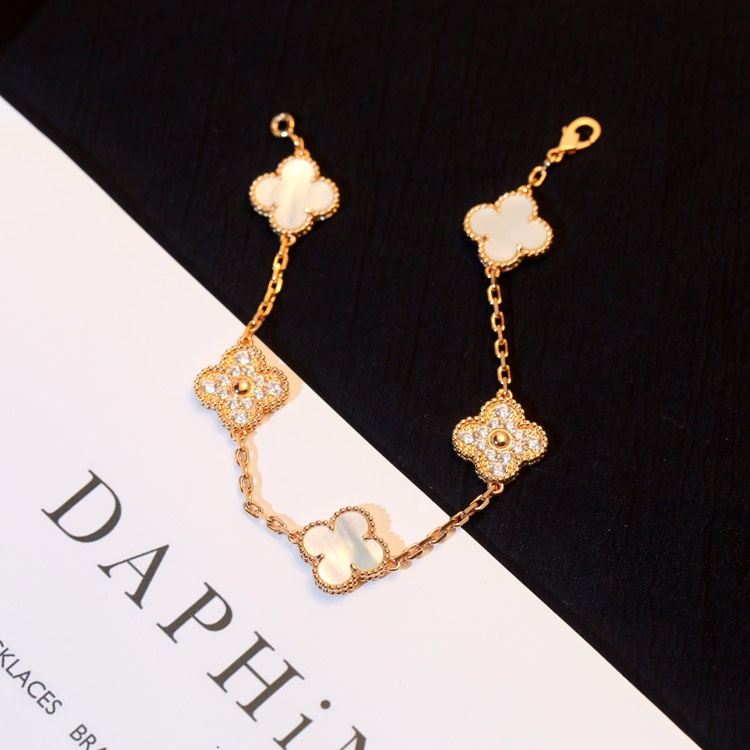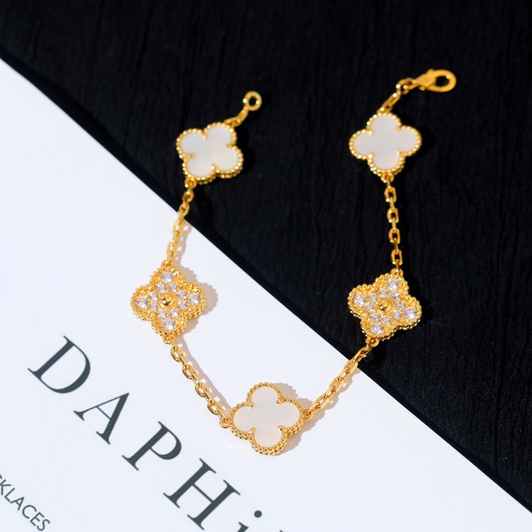 Van Cleef & Arpels klassische fünfblumige Diamant weiße Perlmutt-Armband-3781
