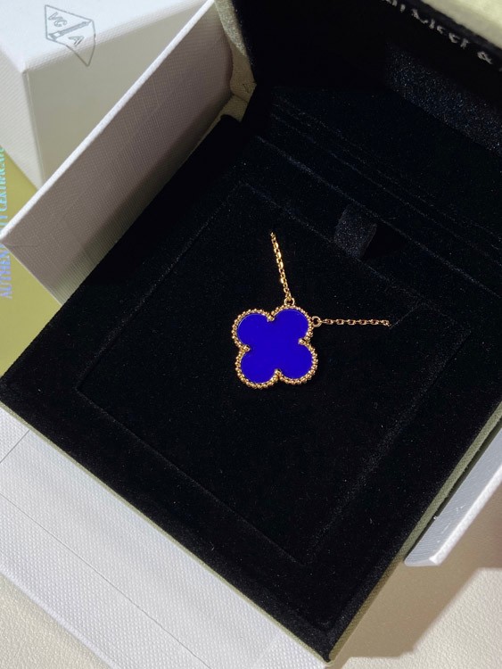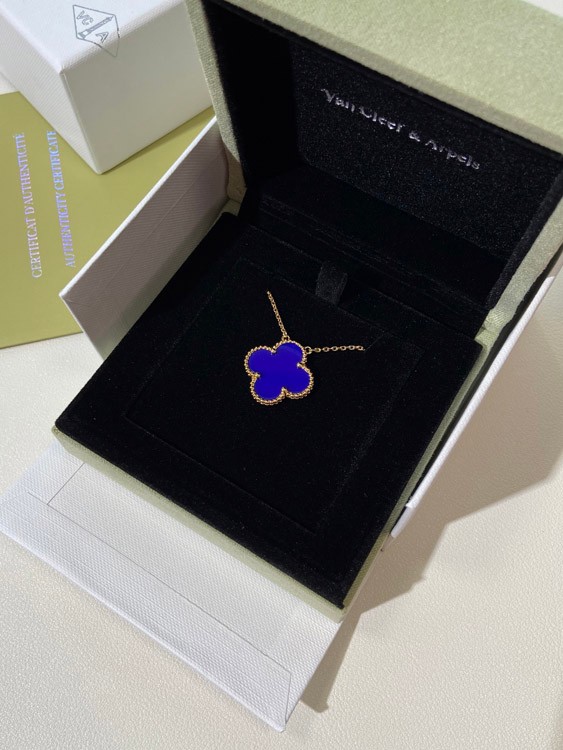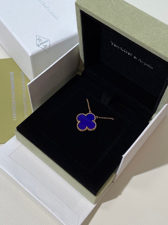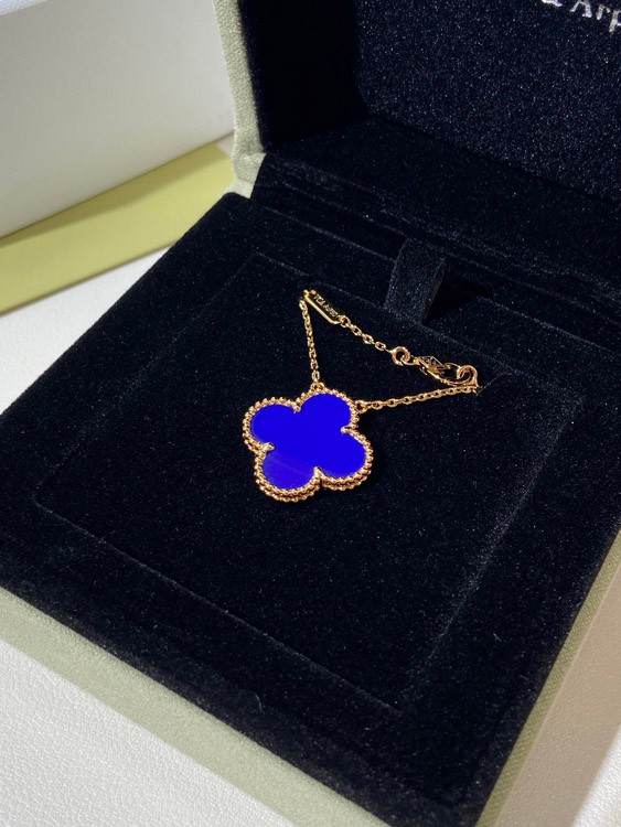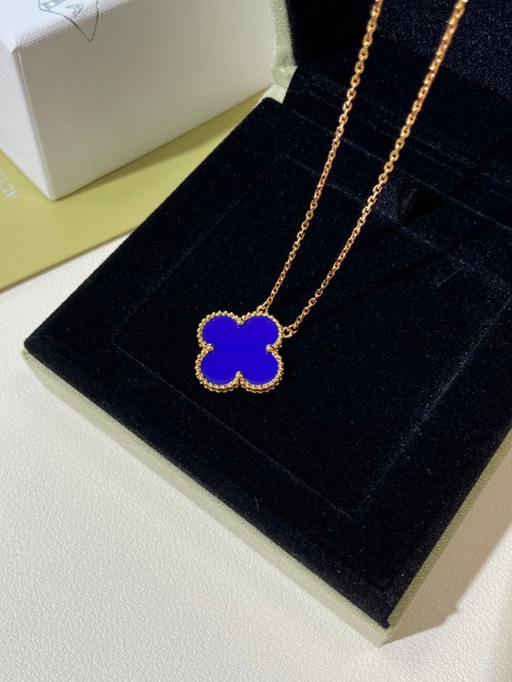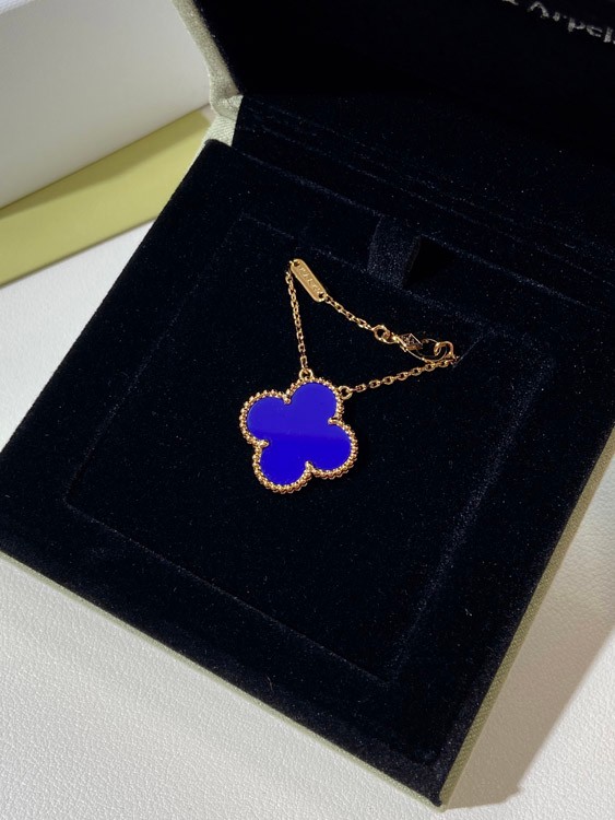 Van Cleef & Arpels Vierblatt Kleefer Gold Blau Obsidian breite Halskette-3791