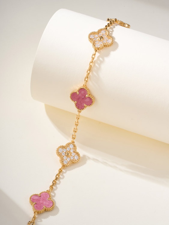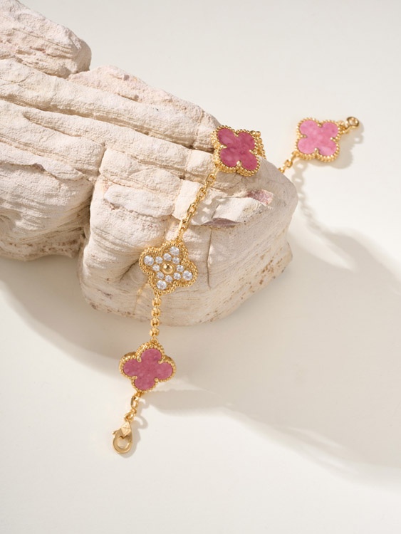 Van Cleef & Arpels rosa Diamant Rosenstein fünf Blume Armband-3903
