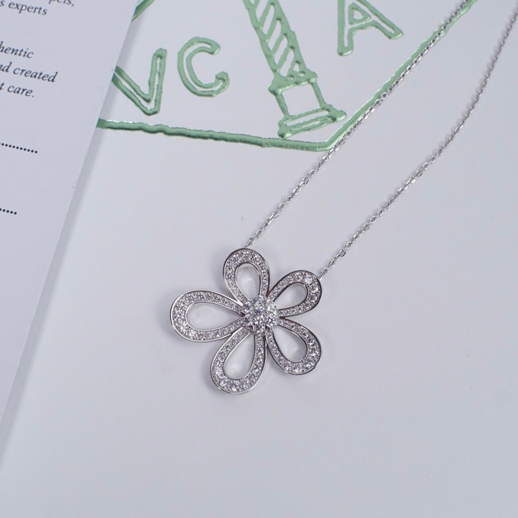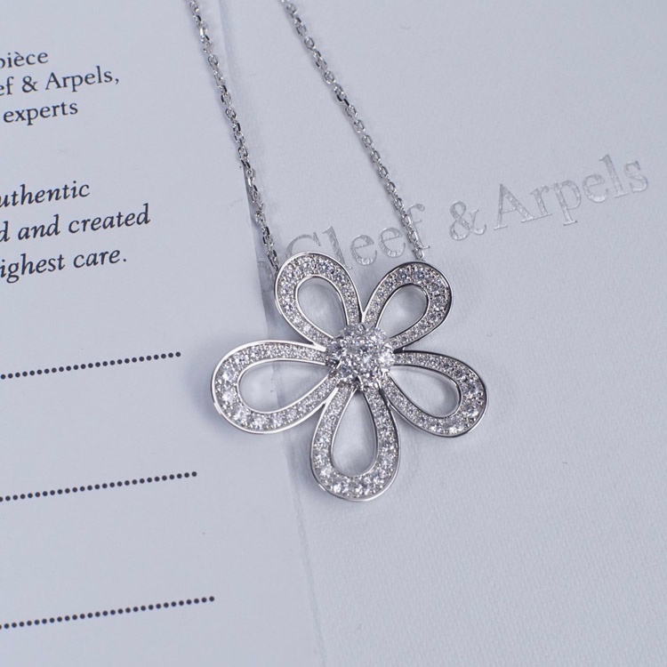 Van Cleef & Arpels Platin voller Diamant große Blume Sonnenblumen Halskette-3770