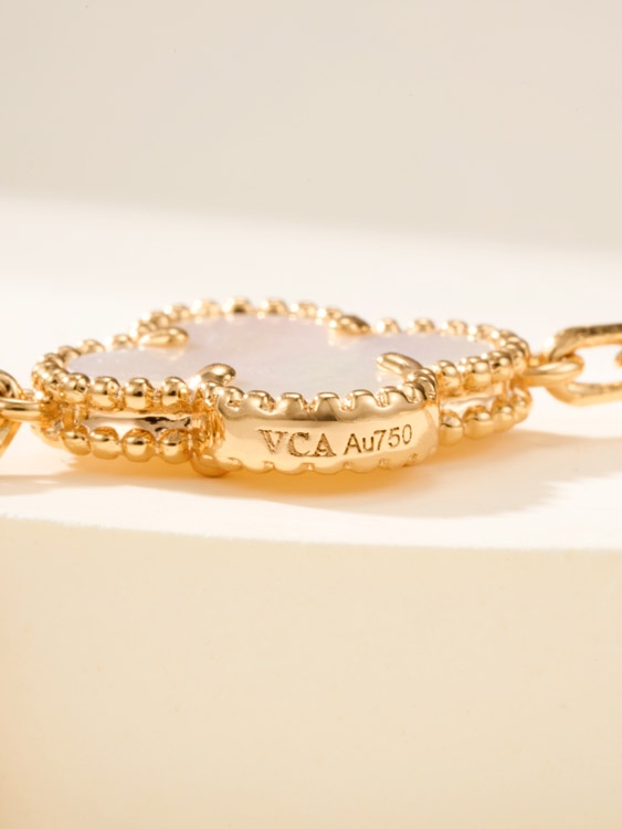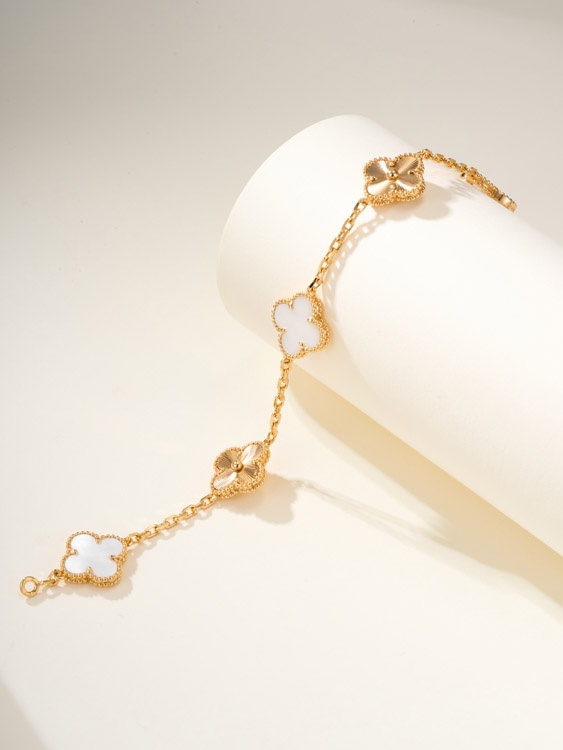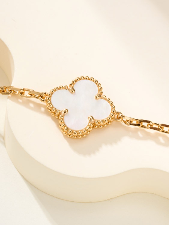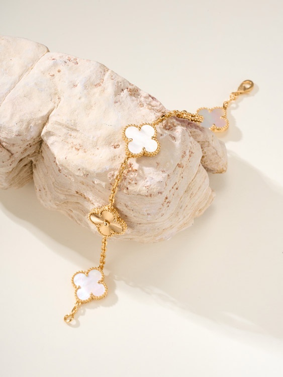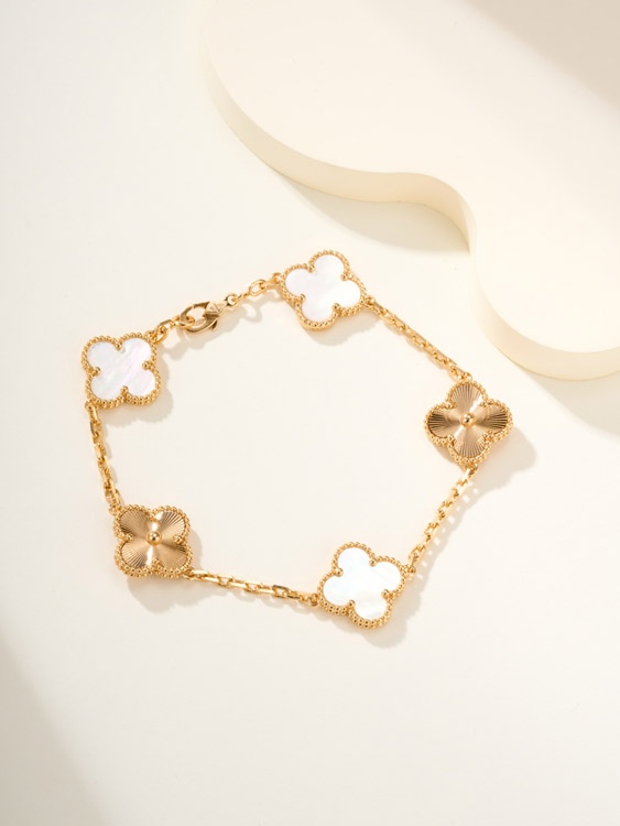 Van Cleef & Arpels Weiß-Perlmutt-Gold Fünf-Blumen-Vier-Blatt-Kleie Armband-3758